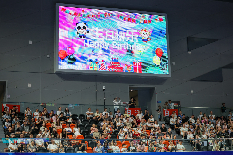 当日,在四川新都香城体育中心举行的2025年成都世运会软式曲棍球女子半决赛中,瑞典队3比1战胜捷克队。8月11日,全场观众为当天25岁生日的瑞典队球员安德松唱生日歌。新华社记者 梁旭 摄
